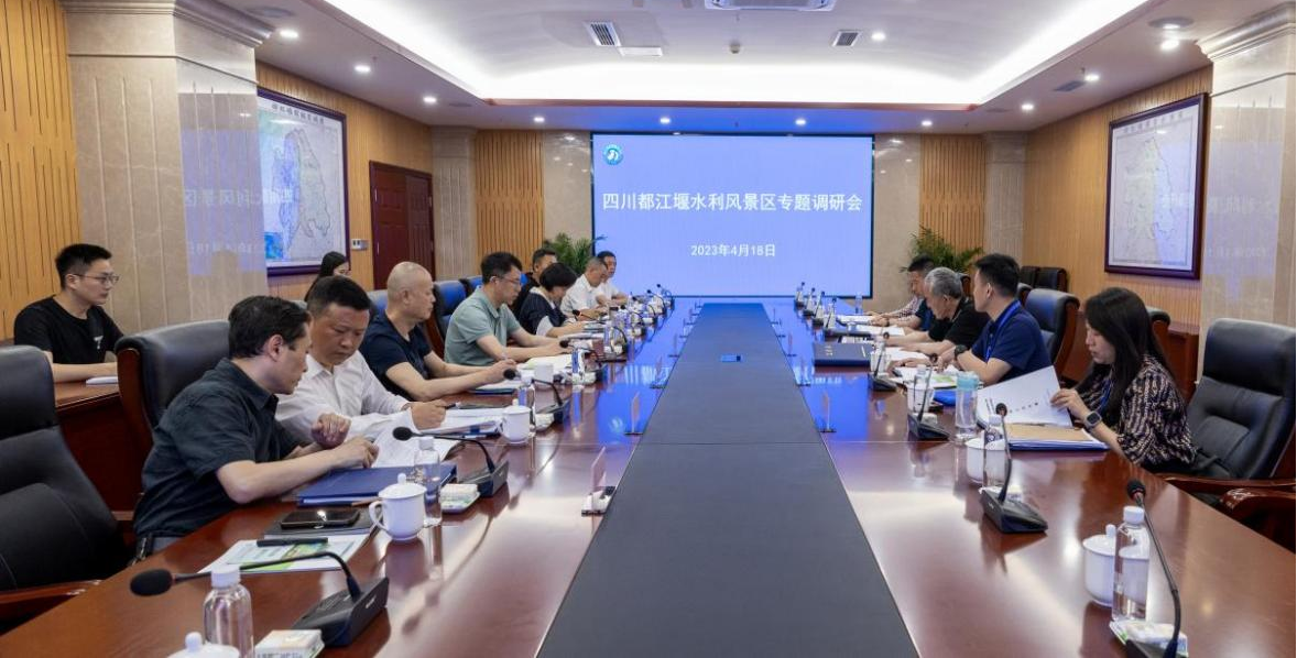 调研组同四川省水利厅农村水利中心、青城山都江堰风景名胜区管理局、都江堰水利发展中心等单位相关工作人员进行了座谈交流。调研组针对此次调研的目的进行了详细的说明,介绍了公司目前的发展情况,听取了相关单位对四川省现有水利风景区以及都江堰水利风景区发展情况的介绍,双方针对水利风景区如何开展服务认证工作,进行了深入的沟通与交流。